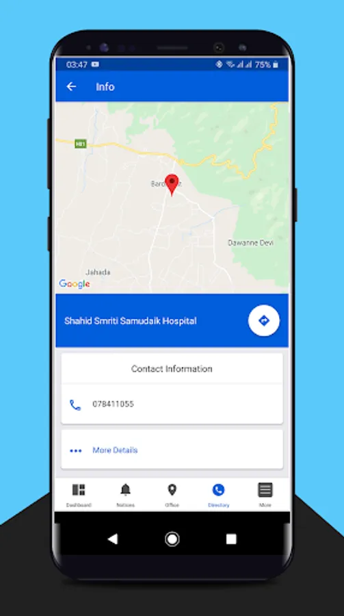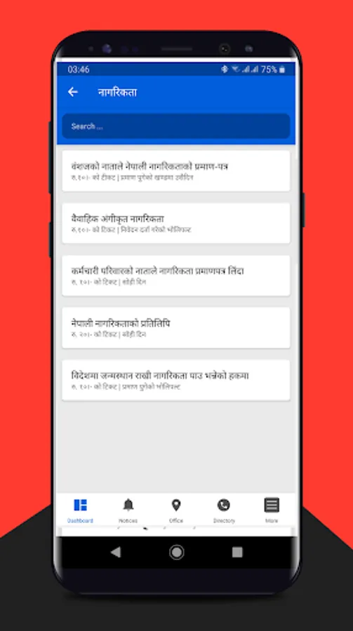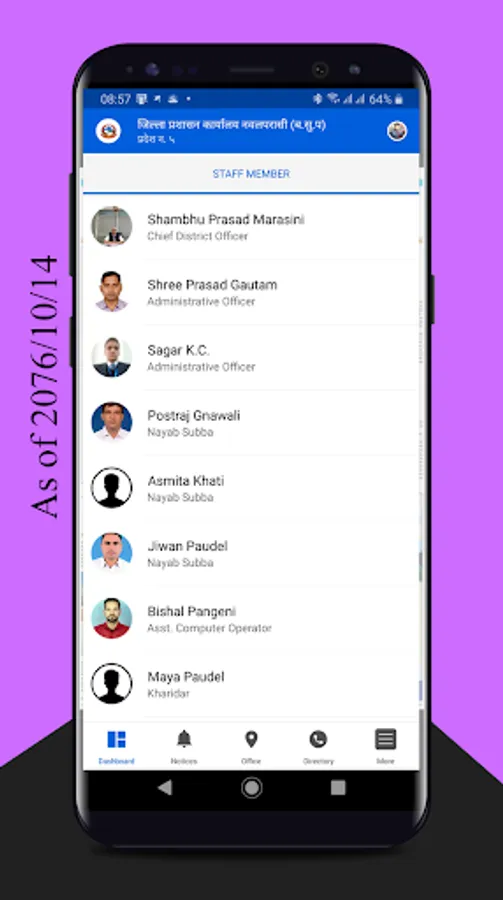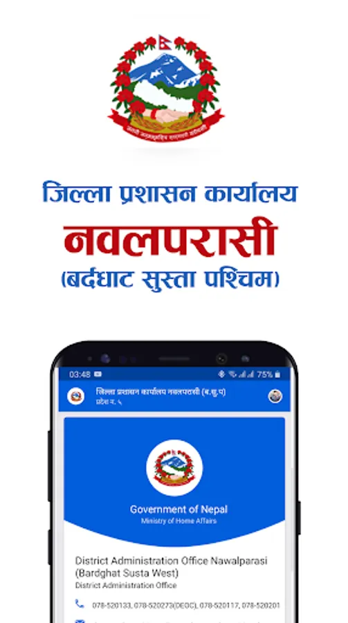 This application contains important notices, information about service delivery procedures of different services, contact detail of office staffs, contact information along with map navigation of different emergency services like Security, Health etc within the district and other organizations.