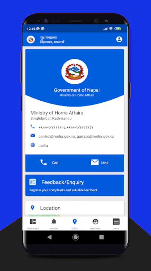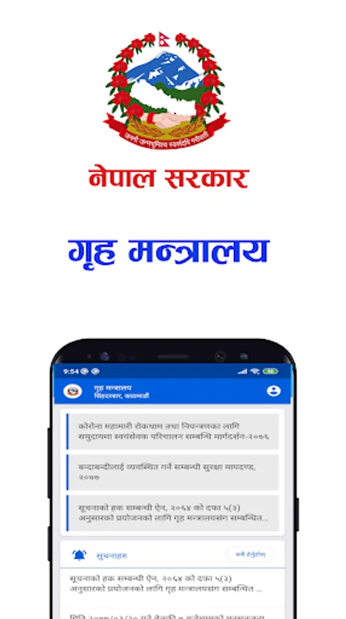 MOHA mobile application aims to provide necessary information to Nepalese Citizens quickly and easily. This mobile application has been developed by Ministry of Home Affairs (गृह मन्त्रालय) to deliver the following services :