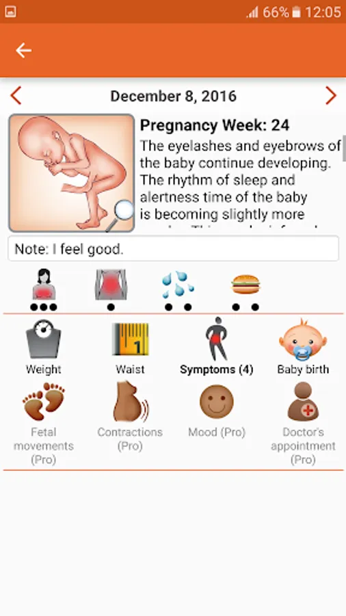 Doctor's appointment. Contractions. Fetal movements. Mood.