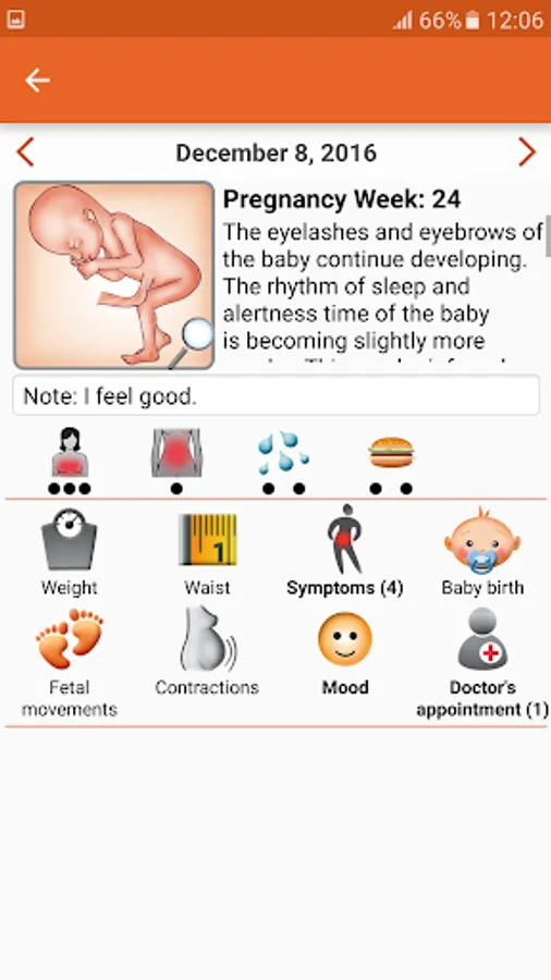 Doctor's appointment. Contractions. Fetal movements. Mood.