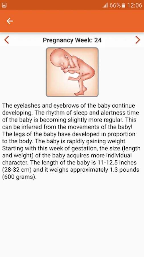Forecasts of the pregnancy period must be viewed as theoretical forecasts that may differ from the actual pregnancy period. Pregnancy week description is general and theoretic, it may not correspond to the actual development stage of a particular pregnancy.