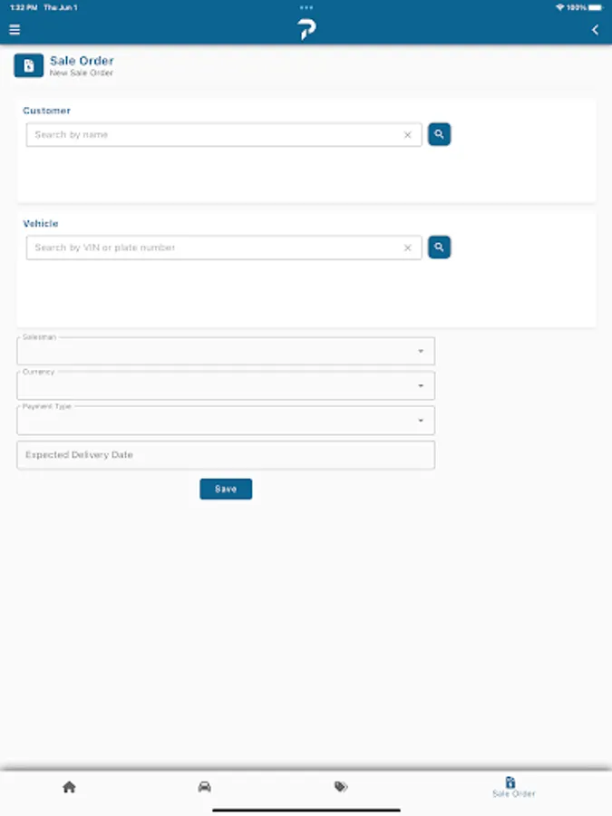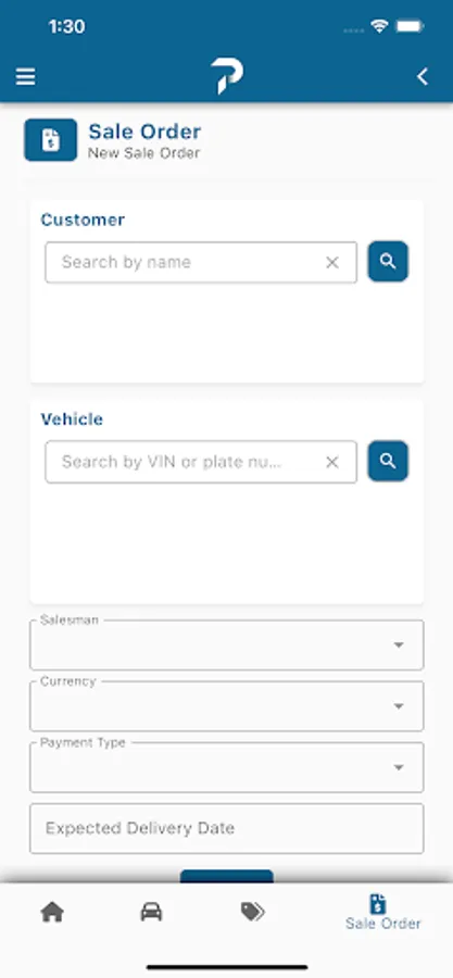 Making new reservations allow users to select a vehicle, quote a price, define the down payment required and give a promised delivery date.