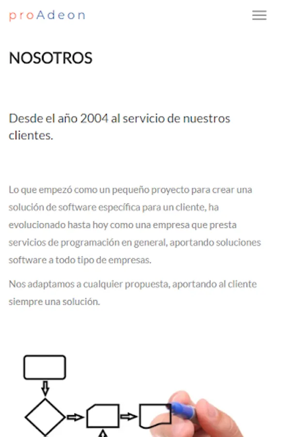 information on the services provided proAdeon systems, as well as a portfolio of clients served.