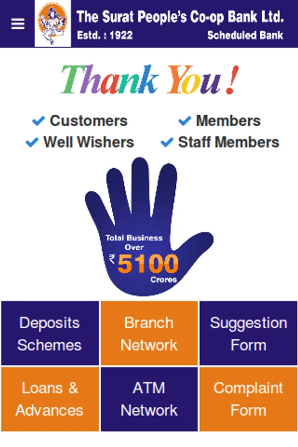 The Bank is serving since last 93 years to the people of Surat and also to the people of South Gujarat. The bank is having network of 25 branches, 21 in Surat, 1 branch at Vapi , 1 branch at Navsari, 1 branch at Chikhli and 1 branch at Valsad.