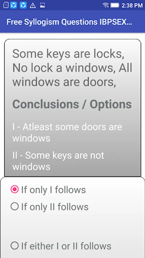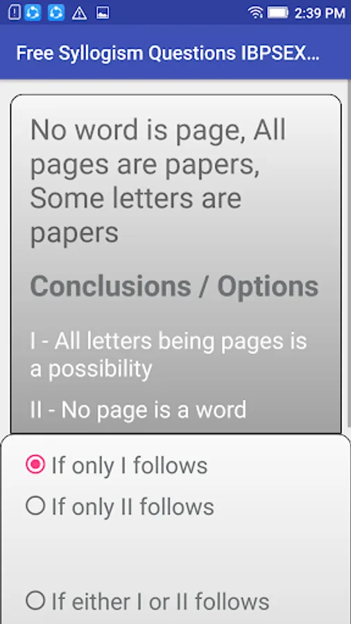 This application is the upgraded version of the our previous released "Free syllogism questions" .This application will provide you the variety of question based on syllogism