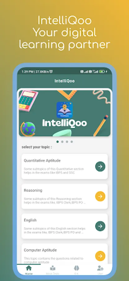 IntelliQoo offers an intuitive user interface, making it easy for users to navigate through the app and access the tests they need. With a comprehensive database of mock tests, users can choose from a variety of examinations, including SSC, IBPS, Railway, and more.