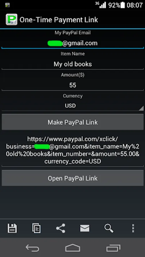 PayLink Generator app lets you create and save custom invoices that you send by email to your customers. Do you need to send someone an invoice with a Paypal payment link? You don't need to ask the person what their Paypal e-mail is, payment is just a click away!