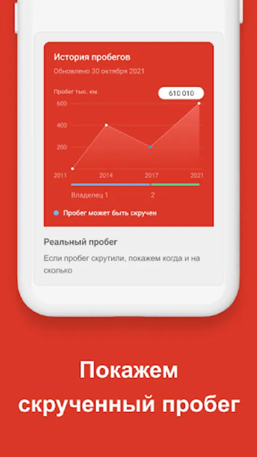 📈 Checking the mileage history. Let's show whether the car's mileage was twisted or not.