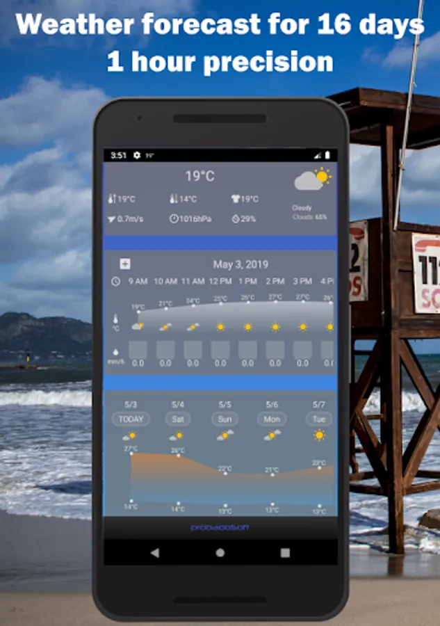 Pocket Weather is an advanced weather app for all locations around the world for the next 16 days with 1 hour precision. Aesthetic charts show changes in temperatures, rainfall, pressure and wind speed in a readable form. The weather forecast is reliable and accurate - it uses data provided by the American GFS (Global Forecast System) system within the NOAA organization (National Oceanic and Atmospheric Administration).