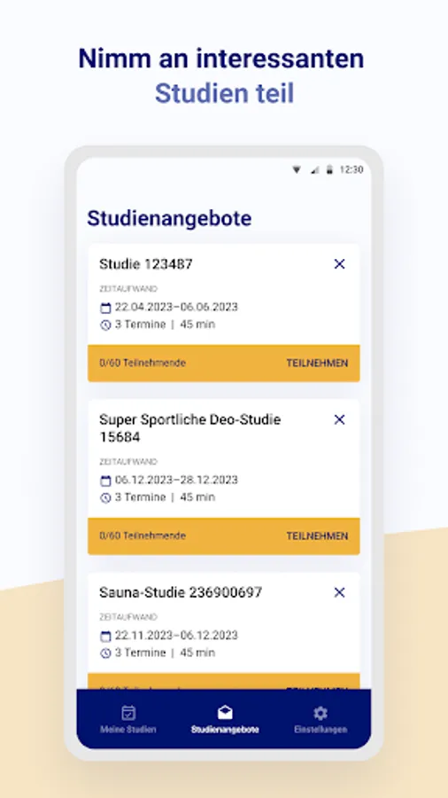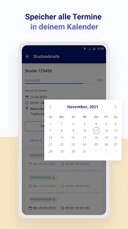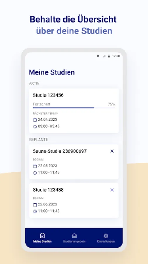 With the Beiersdorf Study app, you can quickly and easily take part in studies, make appointments, postpone or cancel them. With the study app you will be informed about study content and goals and you can easily fill out questionnaires about your studies from home.