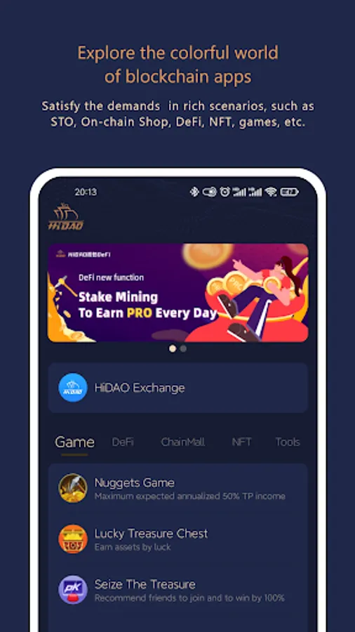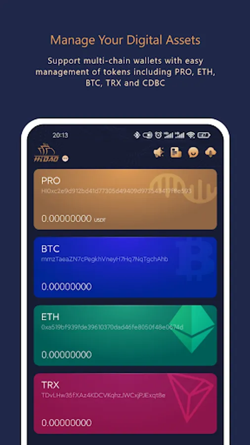 HiDAO is a decentralized wallet developed by PROBE group to provide global users with blockchain technology. HiDAO provides global users with the creation, management, recovery and import of four public chain decentralized wallets of PRO, BTC, Eth and TRX, and realizes three core business scenarios and values of "self-organization", "self finance" and "self commerce" for users in the wallet, Create value for users and realize "everyone can create wealth".