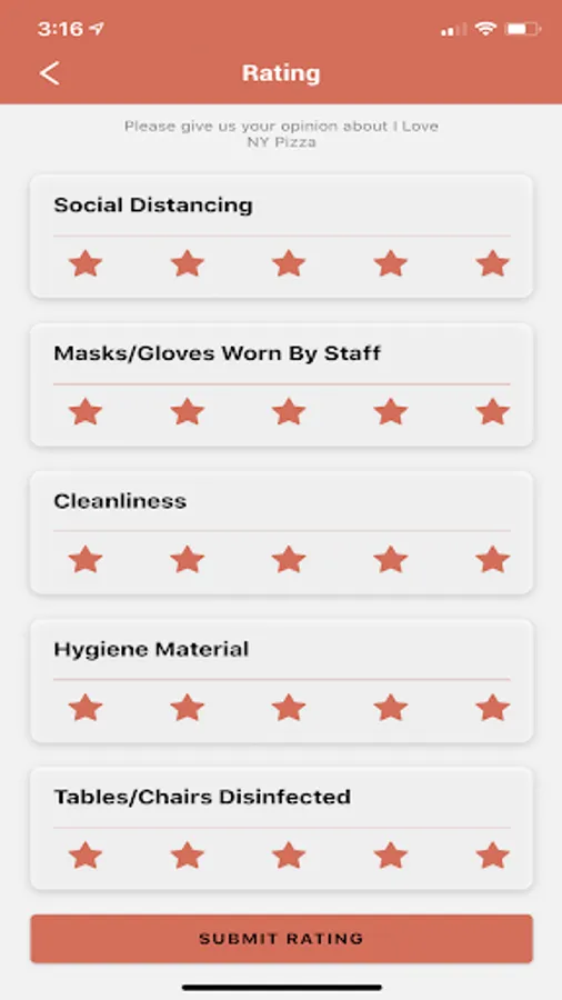 - Rate places you've been to on safety criteria like "Social Distancing," "Masks/Gloves Worn by Staff," etc...