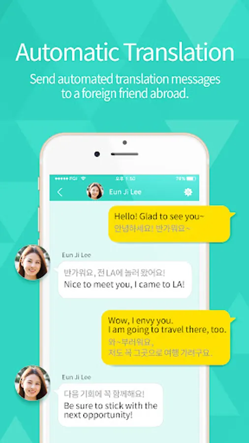 ARGO provides automatic translation of every languages. You can now send and receive unlimited messages with foreign friends even if you don't know any foreign language.