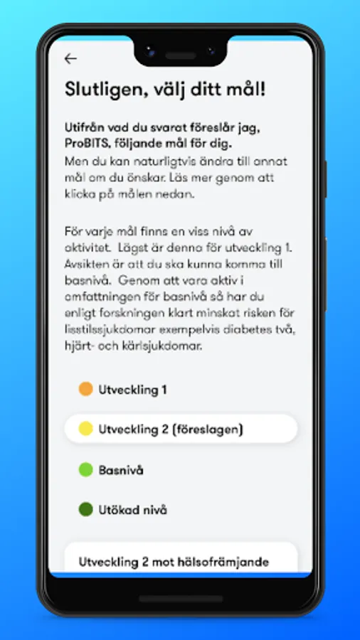 The purpose of ProBITS © is to promote behavioral changes and prevent lifestyle diseases, but the platform can also be used when working with other behavioral changes and habits. With the help of individual coaching and group treatment, ProBITS © provides users and therapists with tools for lifestyle changes in the areas of physical activity, eating habits and balance in life. ProBITS © simplifies long-term support by using frequent digital follow-ups in order to provide better long-term results. The software is developed from experience of working in public health care.