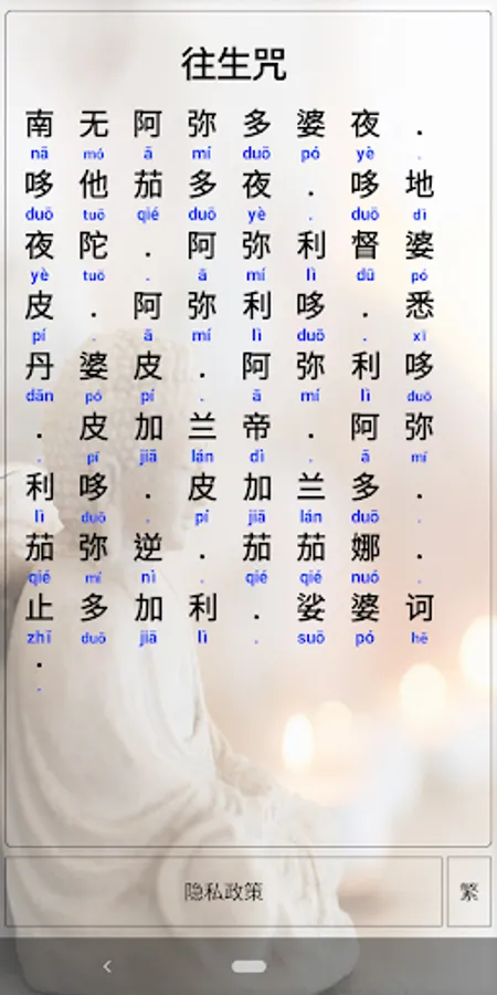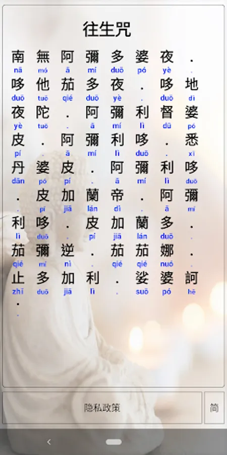 此咒出自《拔一切业障根本得生净土陀罗尼经》。焚香跪拜佛像,合掌念诵此咒,日夜各二十一遍,能灭五逆、十恶、谤法等重罪。诚心念此咒,阿弥陀佛常在头上保佑,怨家不能伤害,可享安乐之福。