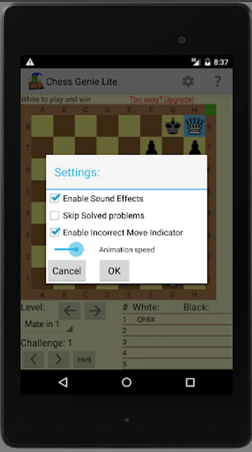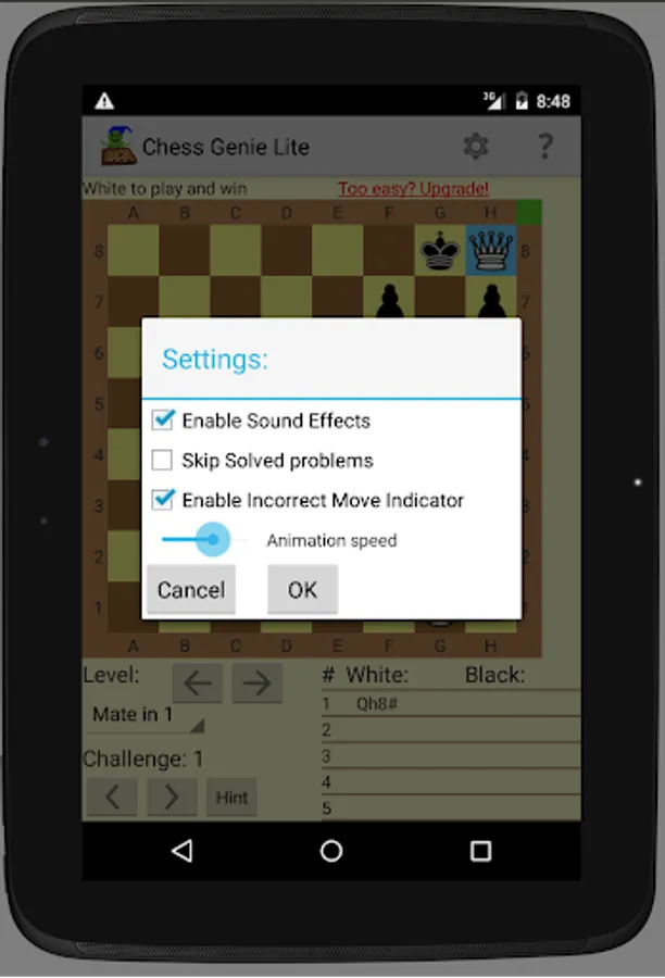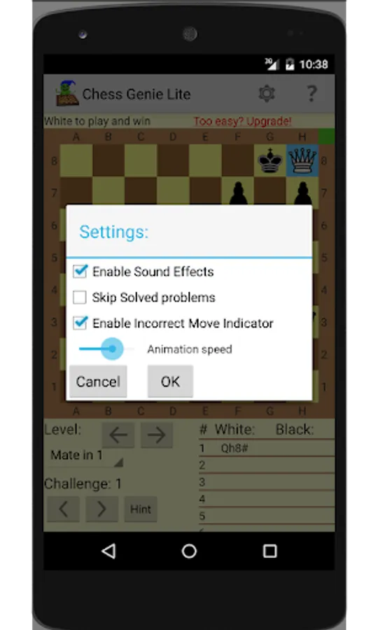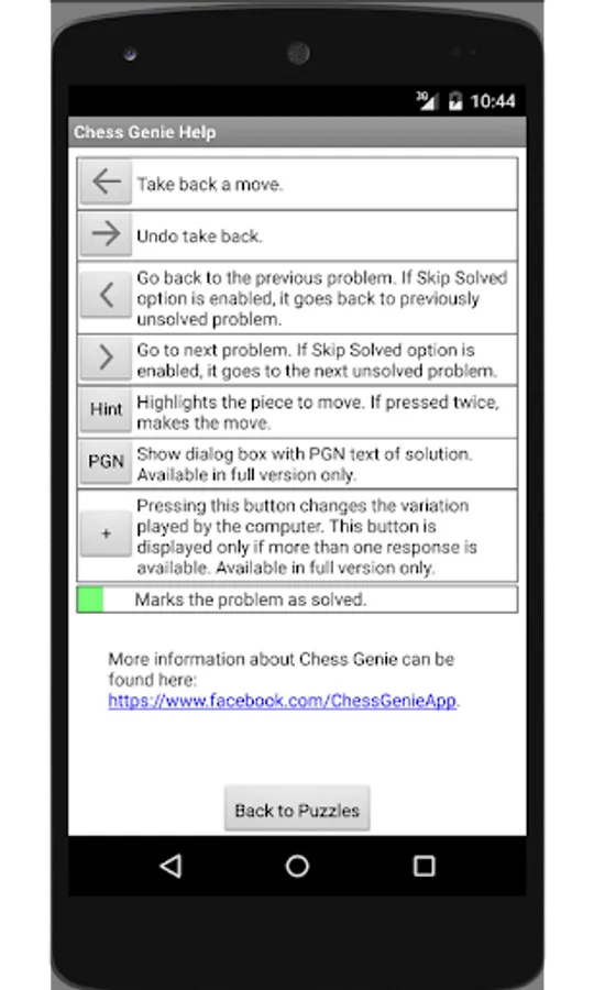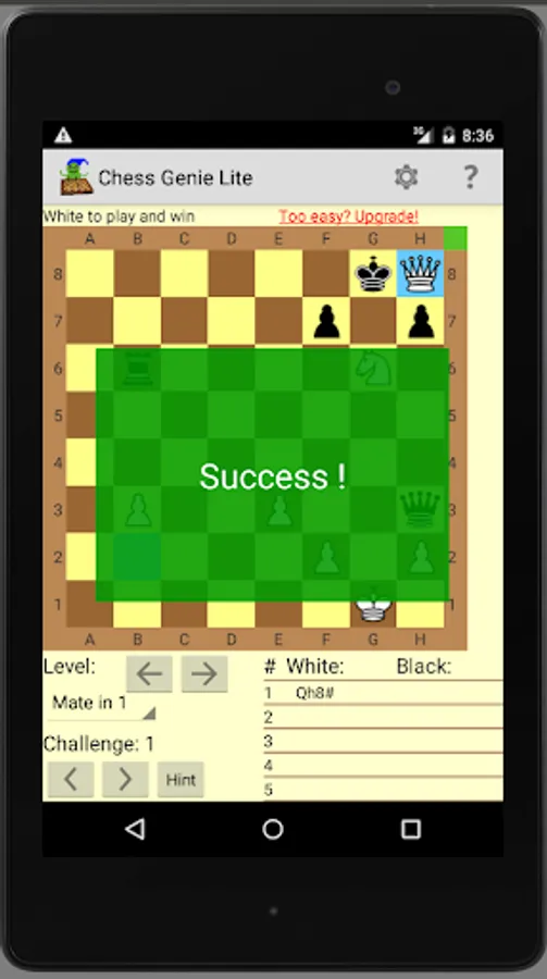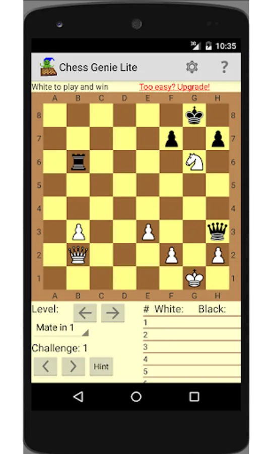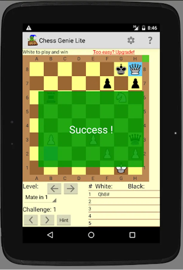 Improve your chess! Chess Genie Lite is a collection of 100 puzzles of checkmate in one move, tested and prepared by Grandmaster Eugene Perelshteyn.