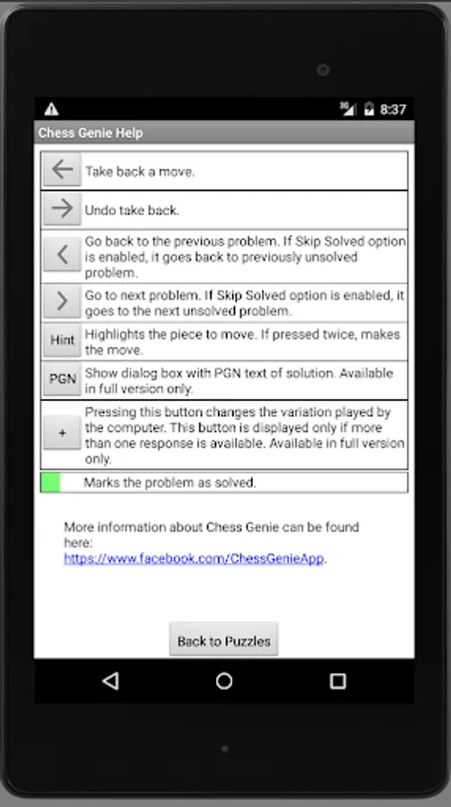 • Free version of Chess Genie (https://play.google.com/store/apps/details?id=com.problem_solver.chess_genie)