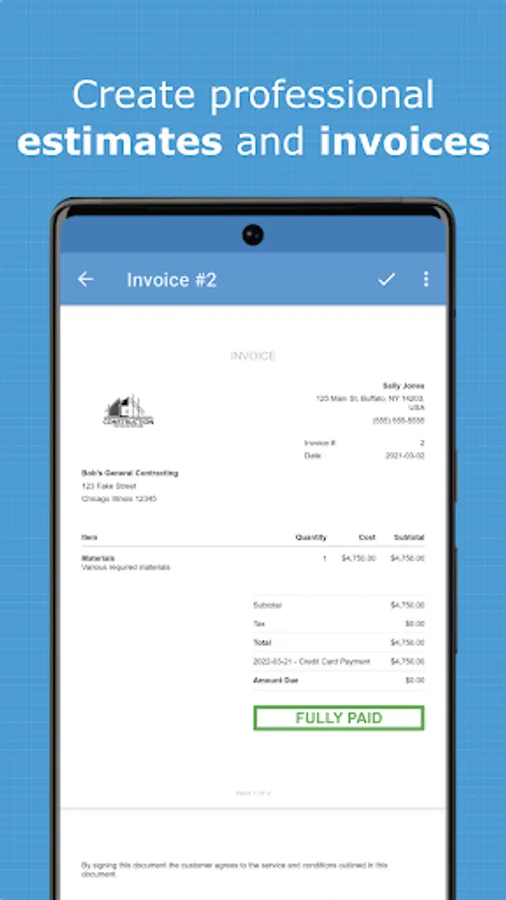 - Create professional, branded ESTIMATES and INVOICES with your own logo