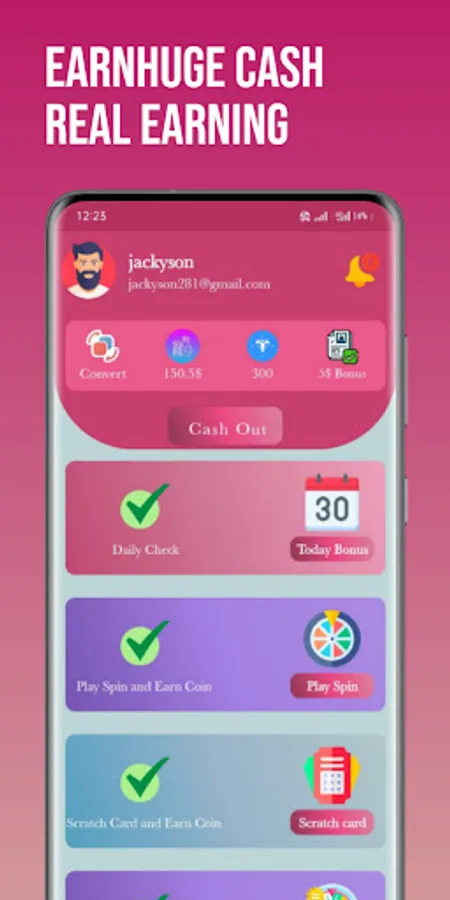 * EarnHuge Cash - Daily Check-in and earn up-to $150.