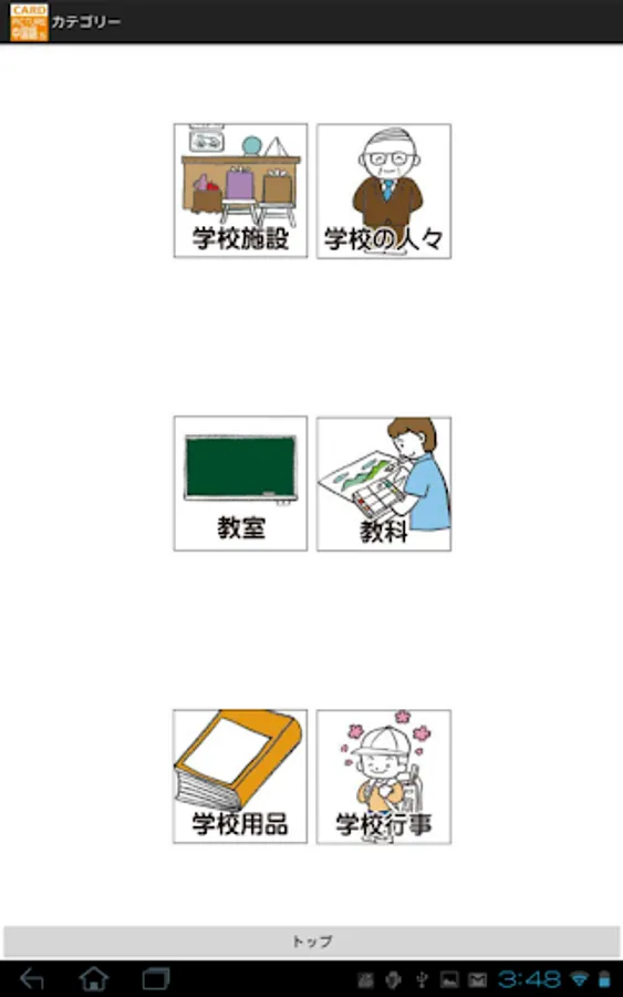 このアプリのコンテンツは 学校施設 教室 学校用品 学校の人々 教科 学校行事です