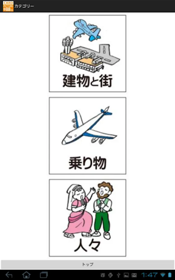 このアプリのコンテンツは 建物と街 乗り物 人々です
