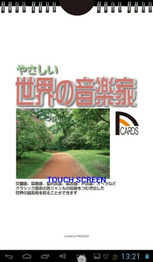 Friendly world of musician friendly card learning application that can be easily understood representative songs of foreign musicians at the portraits and the set