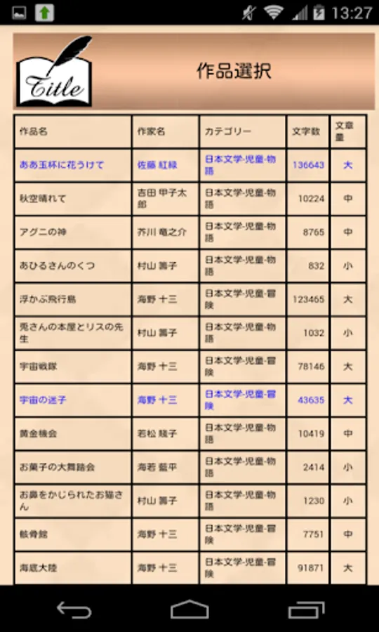 小学低学年からの児童用、中学生から高校生、そして大人にいたるまでの日本、そして世界の有名な名作をすぐ読了することが可能です もちろん 古典文学もはいっています