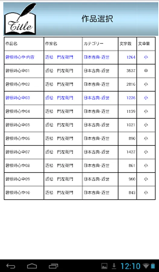 □文学の内容量の大小から選択可