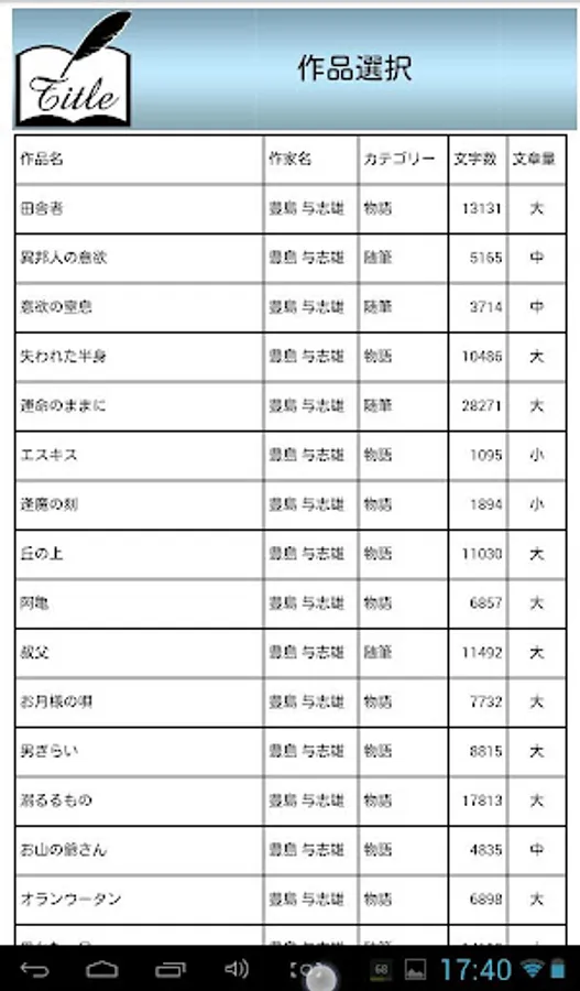 小学低学年からの児童用、中学生から高校生、そして大人にいたるまでの日本、そして世界の有名な名作をすぐ読了することが可能です