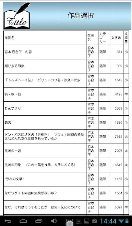 NO 件数 作家 タイトル カテゴリー 文字数 文字量