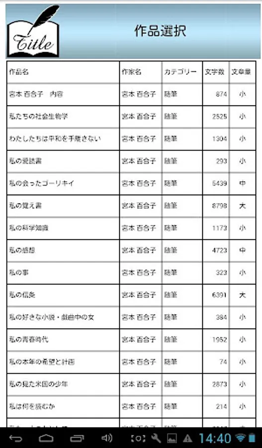 NO 件数 作家 タイトル カテゴリー 文字数 文字量