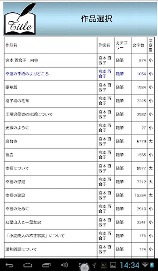 NO 件数 作家 タイトル カテゴリー 文字数 文字量