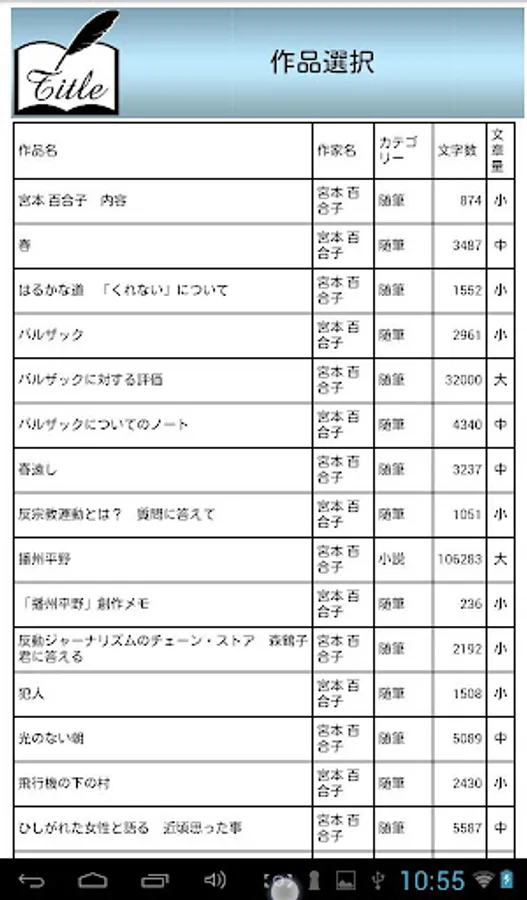 NO 件数 作家 タイトル カテゴリー 文字数 文字量