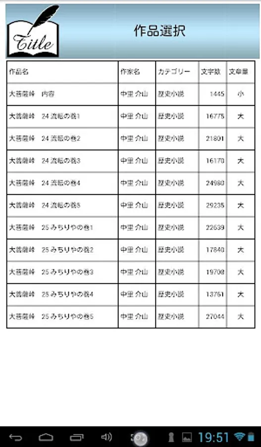 NO VOL 件数 選択 作家名 タイトル名 カテゴリー 文字数 文章量