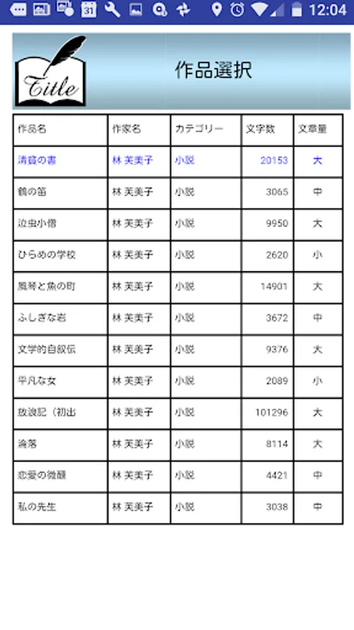 NO vol 件数 選択 作家名 タイトル カテゴリー 文字数 文字量
