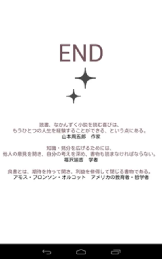 小学低学年からの児童用、中学生から高校生、そして大人にいたるまでの日本、そして世界の有名な名作をすぐ読了することが可能です