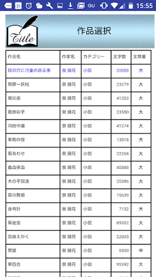 NO VOL 件数 選択 作家名 タイトル カテゴリー 文字数 文字量