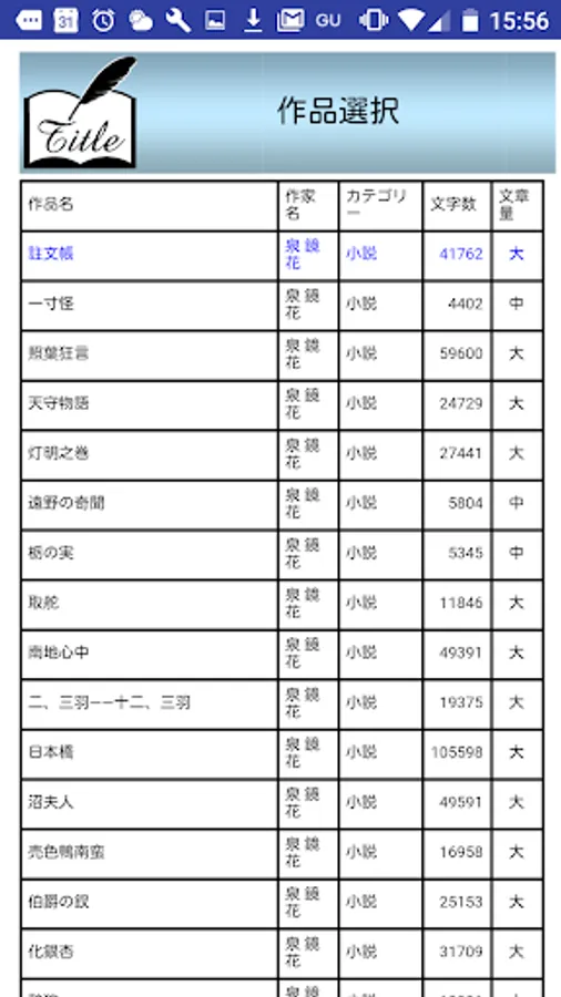 NO VOL 件数 選択 作家名 タイトル カテゴリー 文字数 文字量