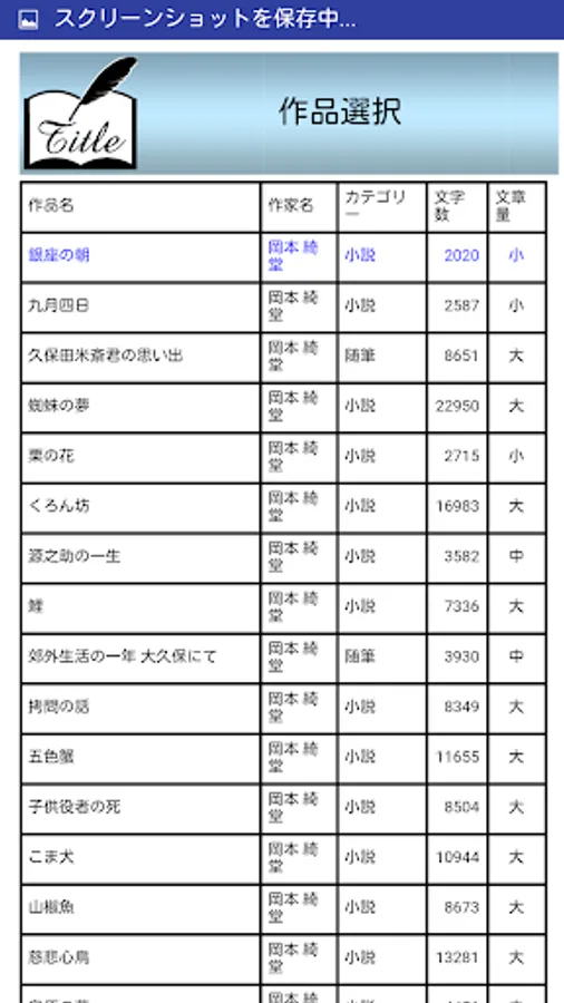 NO VOL 件数 選択 作家名 タイトル カテゴリー 文字数 文字量
