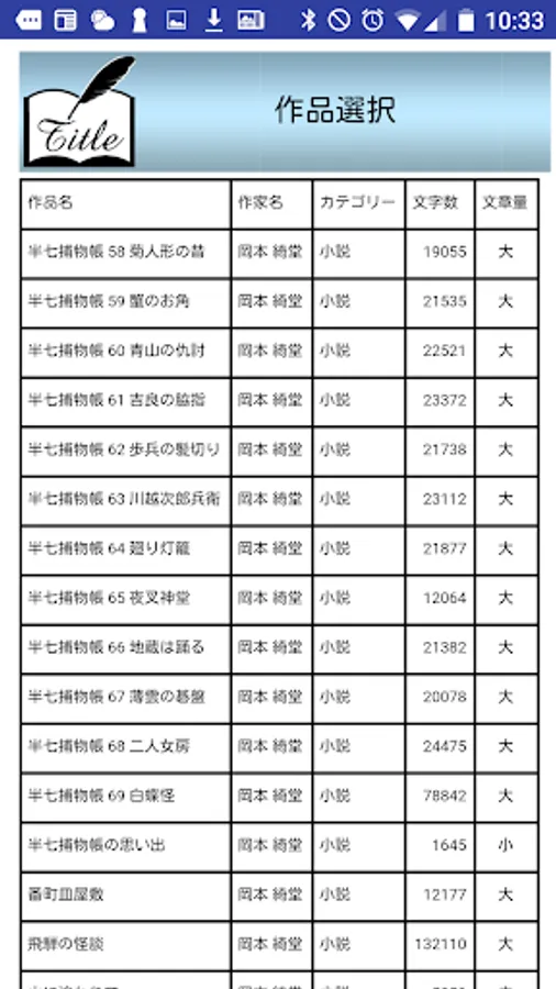 NO VOL 件数 選択 作家名 タイトル カテゴリー 文字数 文字量