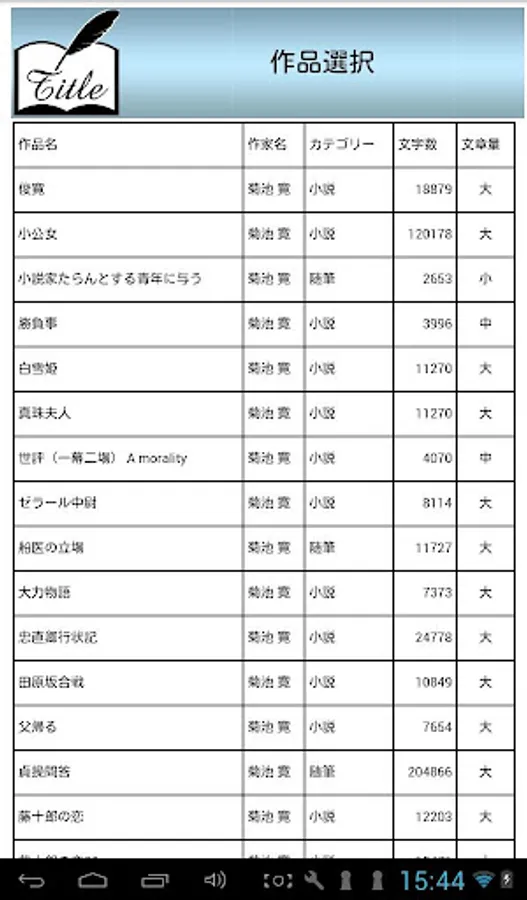 vol 件数 選択 作家名 タイトル カテゴリー 文字数 文字量
