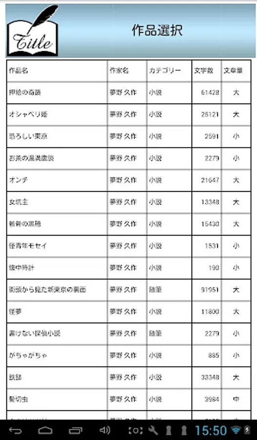 vol 件数 選択 作家名 タイトル カテゴリー 文字数 文字量