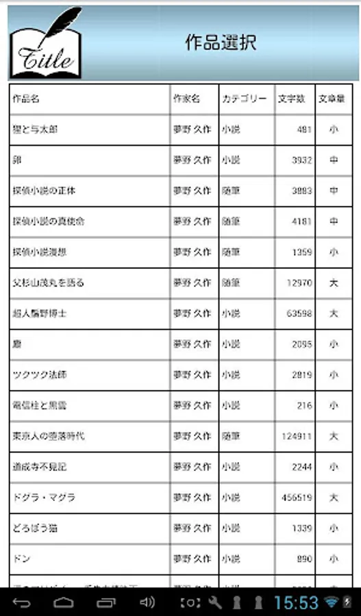 vol 件数 選択 作家名 タイトル カテゴリー 文字数 文字量
