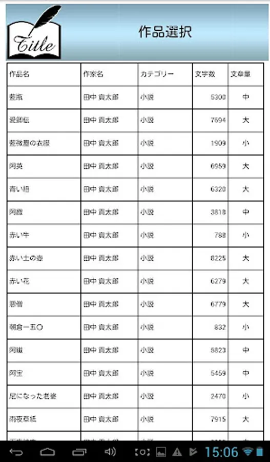 vol 件数 選択 作家名 タイトル カテゴリー 文字数 文字量