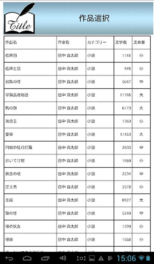 vol 件数 選択 作家名 タイトル カテゴリー 文字数 文字量