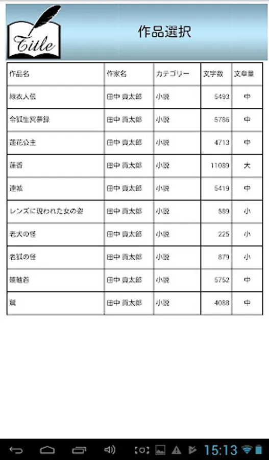 vol 件数 選択 作家名 タイトル カテゴリー 文字数 文字量