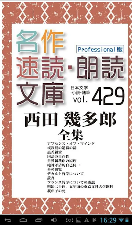 名作速読朗読文庫vol.429 西田 幾多郎全集1 読上機能付き Professional版