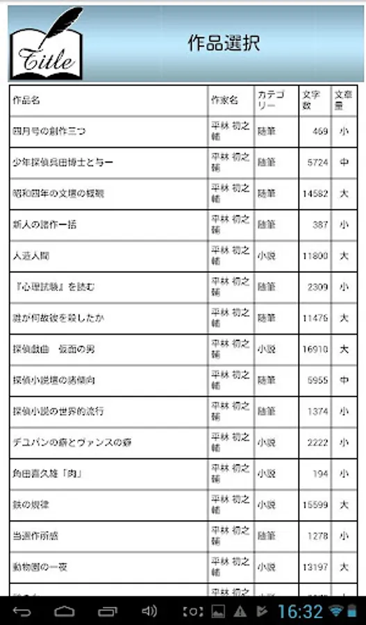 vol 件数 選択 作家名 タイトル カテゴリー 文字数 文字量