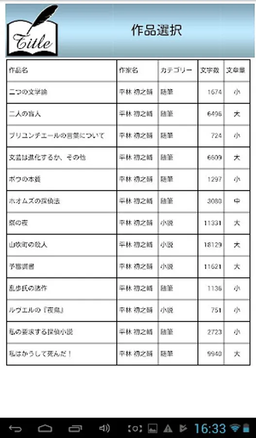 vol 件数 選択 作家名 タイトル カテゴリー 文字数 文字量
