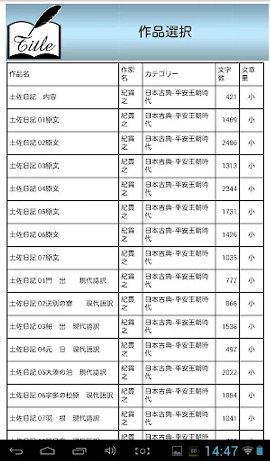 小学低学年からの児童用、中学生から高校生、そして大人にいたるまでの日本、そして世界の有名な名作をすぐ読了することが可能です